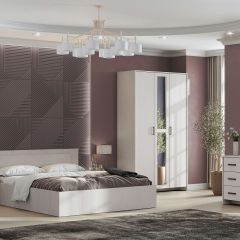 • Кровать двойная 1,6х2,0. Каркасы кроватей полностью изготавливаются из ЛДСП в цвет корпуса, за исключением внутренних, невидимых деталей, изготавливаемых из неламинированного ДСП. В качестве декора на изголовьях кроватей устанавливаются накладки (ШхВ) 1134/1334х200 мм в цвет фасадов.